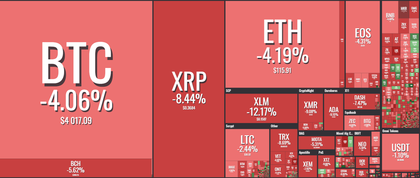Many analysts predicted that if the support level of $5,350 was touched and the price plunged below that, the valuation of BTC would hit $3,000 and also would have a possibility of hitting $1,250. In both cases which, the price would be the lowest ever for BTC in the history. The infographics of coin360 show how deep the market has dived with the plunge.