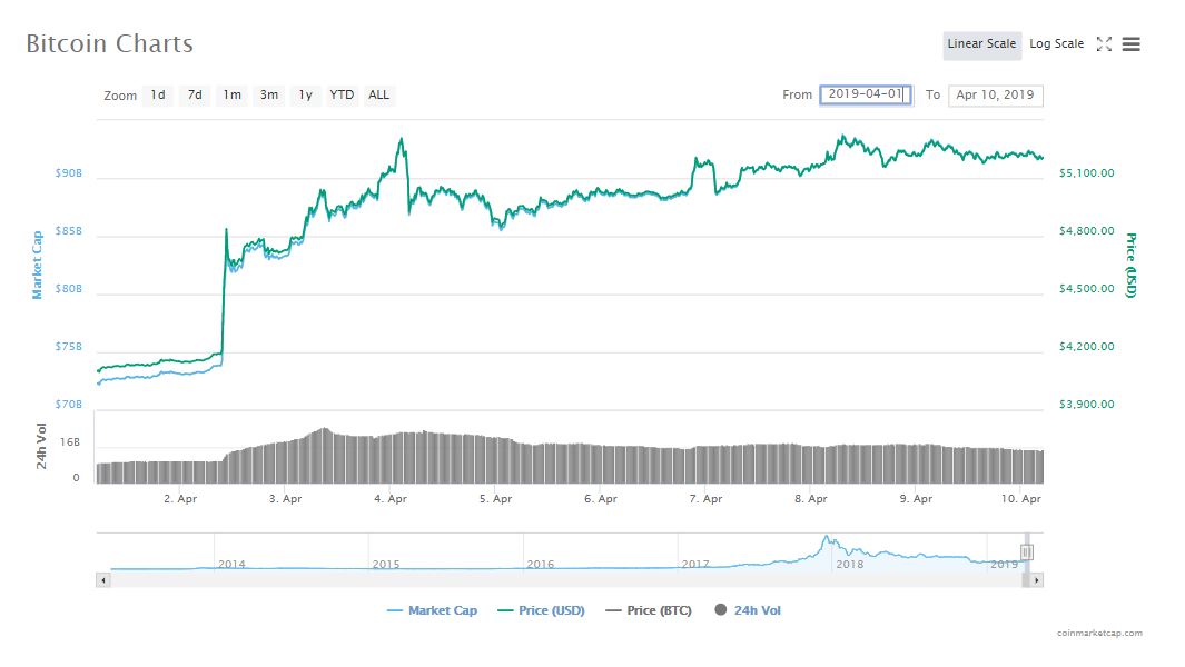 At the time of writing this report, bitcoin stands around $5,254 after rallying up in the past week. The following graph shows the drastic uptick that the digital asset observed in a few days.