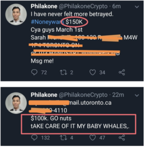 Poor Phil didn’t stop there and continued exposing other elements of Sarah’s life, her real name and her home address! He also made the mistake of adding insane amounts of money next to the tweet and made it look like he wanted to acquire the services of somebody who could “take care” of the situation.