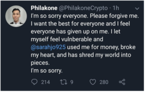 The world of Blockchains and Crypto may be a technical art, but it can become extremely messy when the people in it drag it into their breakups. That is what happened when prominent crypto mentor and trader, Philakone exposed his ex-girlfriend’s identity on Twitter after she allegedly broke his heart as he claims she had only been using him for his money.