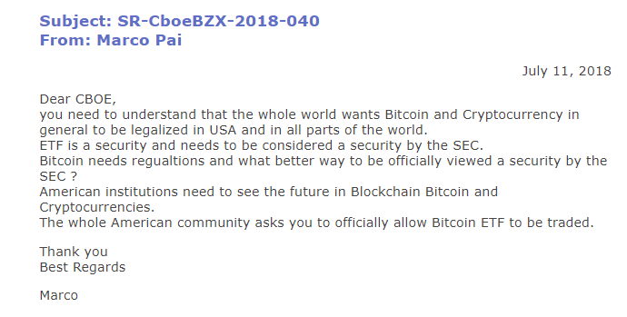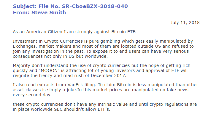 Although some comments were also posted against the establishment of such crypto-based ETF.