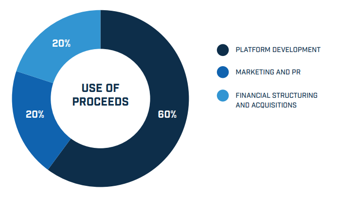 To fund the operations of the company, the company decides to have a token sale with a hard cap of $50 million. Details on the sale phases, accepted forms of currency, and exchange rates will be communicated in Q3 2018. According to the company, the token sale will fund the company operations and the allocation of funds would be as follows:
