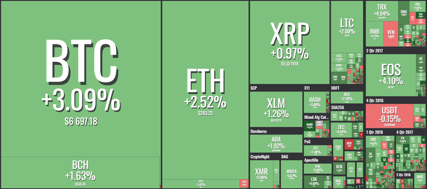 The info-graphics show the percentages of growth of the individual currencies with minimal signs of red. There was, however, a spike seen a few days back, one of the reasons was the repercussion of the US and China trade war, which caused a dip in the Chinese currency. Resultantly, a lot of Chinese people put their investments in BTC as they saw it better than gold and more readily available.