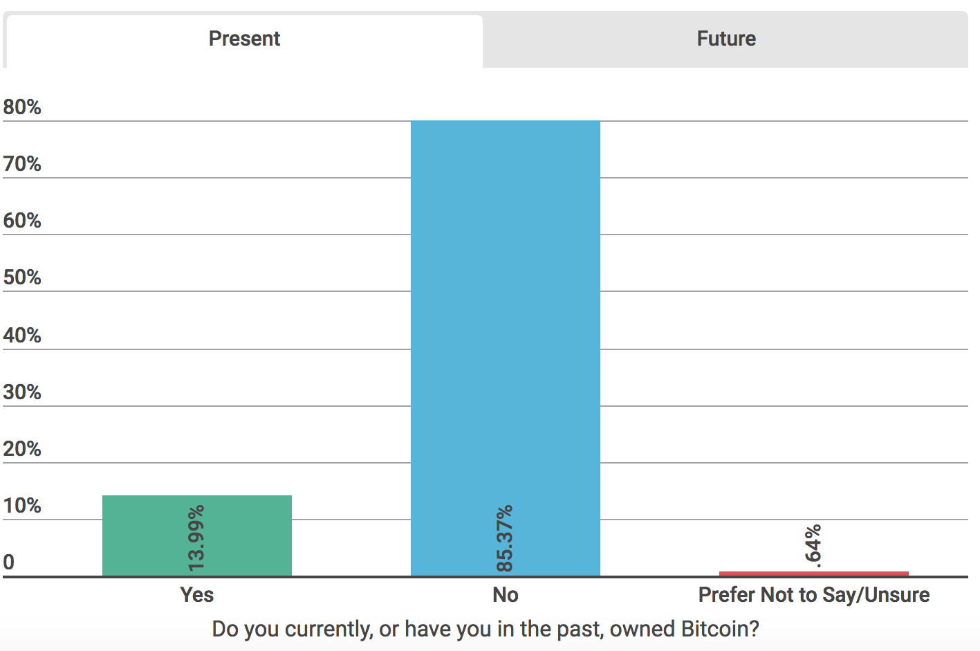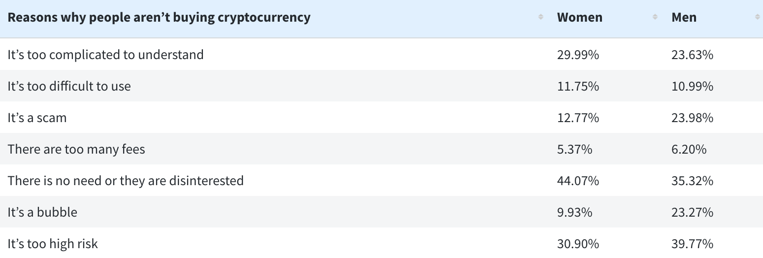 The sample size of the survey was rather large: 5,761, hence it can safely be said to be representative of the population too. Findings suggested that only five percent of the sample owned cryptocurrency, whereas 21 percent of them were “considering adding cryptocurrency to their portfolios”. The study also distinctively perceived that 58 percent the aforementioned cryptocurrency holders were men under 34 years of age.