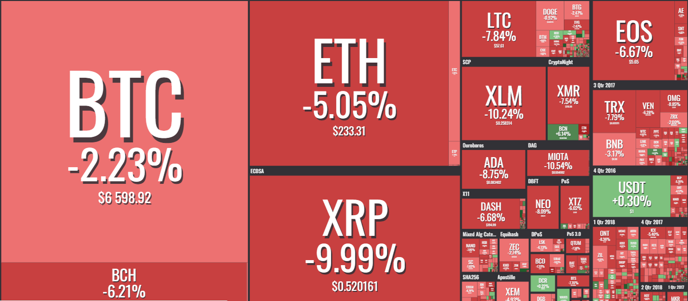 Bitcoin, which was on the verge of touching $6,800 trading rate also plunged to under $6,600, hitting the lows of $6,598 as of press time with a negative growth rate 2.23% in 24 hours.