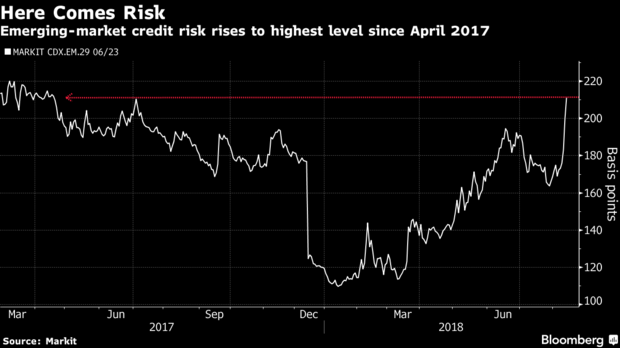 The repercussion of Erdogan’s firm stance was instant. With the turmoil in Turkey fueling all kinds of fears for investors, who shunned riskier assets and sought safety in developed nations’ bonds. The Lira sank as much as 11 percent, the Rand 9.4 percent and Mexico’s peso 2.4 percent. South Africa’s Rand, the Argentine Peso also fell and global stocks declined. The euro sank as much as 1.2 percent to the weakest in a year against the U.S. dollar amid concern about European exposure to Turkish banks.
